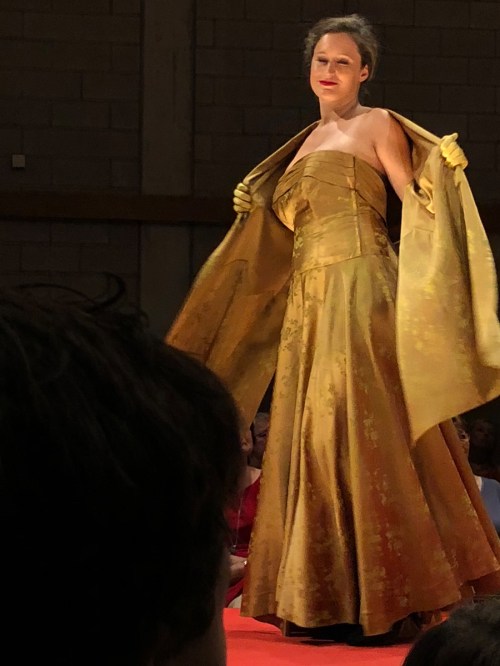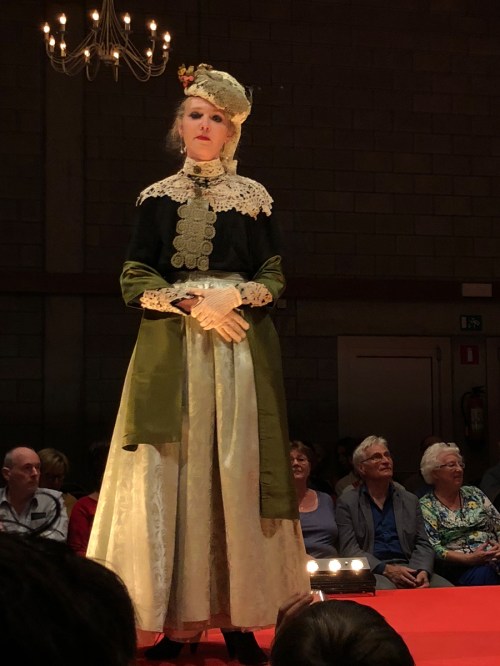 Voor deze show heeft Vivien Delbaere van het “Vintage Modemuseum” heel wat van haar stukken ter beschikking gesteld voor de show. Volgens de folder is alles begonnen na het erven van twee zijde en mousseline jurken en een kanten jas. Heel wat stukken van de collectie zijn gerestaureerd. En die collectie is indrukwekkend!