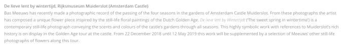 Mijn kameraad en ik hadden besloten om de “tentoonstelling” van Bas Meeuws in het Muiderslot te bezoeken op 6 mei. Zoals u kan zien op de screenshot van de website van “Stichting Rijksmuseum Muiderslot” loopt de tentoonstelling tot 12 mei. Op de tweede screenshot, deze keer van de website van Meeuws zelf, staat precies hetzelfde.
