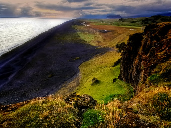 Een echt typisch landschap van IJsland. Op fotografisch gebied is het een echte no-brainer. Je hebt driehoeken en een S-curve. Twee elementen die altijd werken. Voor de rest is het kijken naar de verschillende tinten groen en naar de kleine plaatsen waar het oranje/rode er een beetje doorkomt. En … laat je verbeelding werken. Of droom eventjes weg. Het enige wat een beetje saai is, is de lucht ondanks dat er wolken waren. Dat kun je zien aan de “plekken” in het landschap waar er dus meer licht valt dan op andere. Er is alleen een klein beetje structuur bovenaan links. Bepaalde fotografen voegen er dan zelf wolken of structuur aan toe.