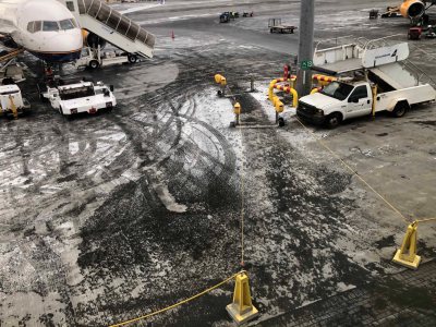 Bij het uitstappen en dus op weg naar het luchthavengebouw zag ik bovenstaande situatie: een vliegtuig en twee koordjes. Niet moeilijk nietwaar: wanneer je naar het vliegtuig moet, loop je tussen de twee koordjes. Punt. Bij ons zouden er dikke koorden hangen, grote plakaten staan, borden, wegwijzers, tekens op de grond, bewakers in uniform, politie met allerhande schiettuig, een legervoertuig en waarschijnlijk een wachttoren. En natuurlijk camera’s, veel camera’s en dit allemaal voor uw veiligheid. In IJsland twee koordjes; hier doen ze gewoon normaal!