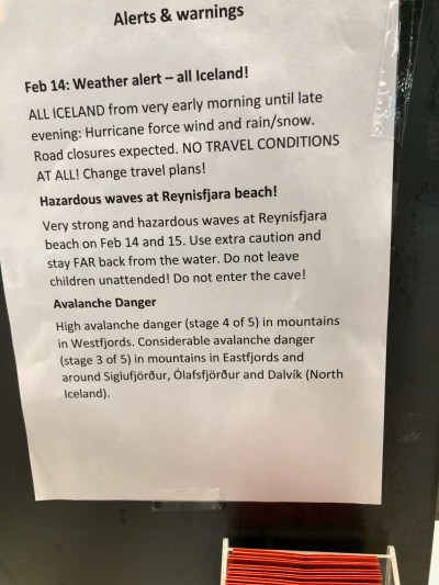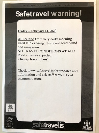 Ook op de o zo noodzakelijke website https://www.safetravel.is worden de mensen gewaarschuwd om binnen te blijven.