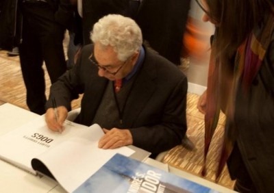 Op een andere stand was de grote Elliot Erwitt zijn boeken aan het signeren. Bij het verlaten van het salon kwam ik hem tegen in het park. Het ganse gebeuren vond hij maar niks: te druk en te veel mensen ….