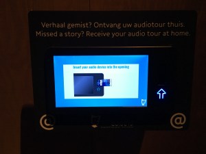 Bij het binnenkomen van de tentoonstelling kreeg je een “podcatcher”, een toestelletje dat je naar een bepaald icoontje richt en dat dan automatisch en ogenblikkelijk uitleg begint af te spelen over hetgeen je naar kijkt. Ofwel hou je het ding dicht bij je oor ofwel gebruik je een “oortjes”. De meeste mensen liepen rond zonder oortjes en het stoorde helemaal niet.