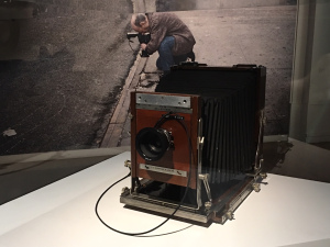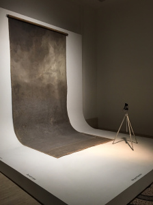 Op de tentoonstelling kon je ook het doek zien dat hij als achtergrond gebruikte (blijkbaar een oud theaterdoek van Parijs) evenals het fototoestel dat hij gebruikte voor de portretten als dat van de sigaretten(peuken)foto’s.