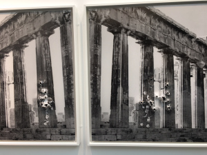 Enfin, eens binnen zie je eigenlijk hetzelfde als het jaar ervoor: veel grote foto’s, veel “rare” foto’s waarbij een geschreven of gesproken uitleg hoort (en waar ik dan niets van versta – maar dat is mijn probleem) en een soms hautaine attitude. Hier wordt gemikt op de kapitaalkrachtige voorbijganger en/of investeerder. Op zich niets mis mee natuurlijk. Om kort door de bocht te gaan: de prijs van de kunstwerken is niet (noodzakelijk) evenredig met de kwaliteit ervan. Goesting is koop en daar is dat niet anders. En wanneer je een naam hebt dan is alles goed, mooi en verkoopbaar. Had ik sommige van de foto’s die daar hangen, afgegeven op mijn examen, dan was ik met vlag en wimpel … gebuisd.